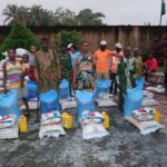 The News Agency of Nigeria (NAN) reports that items distributed included 300 bags of parboiled rice (25kg), 300 bags of garri (25kg) and 300 cartons of spaghetti.